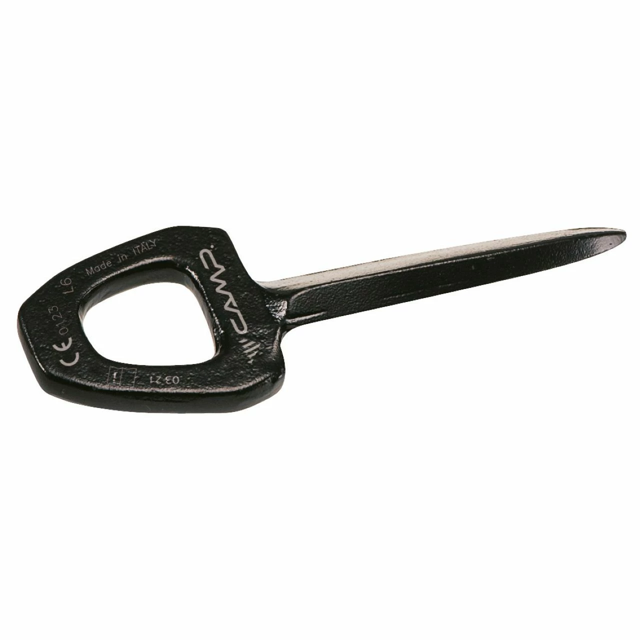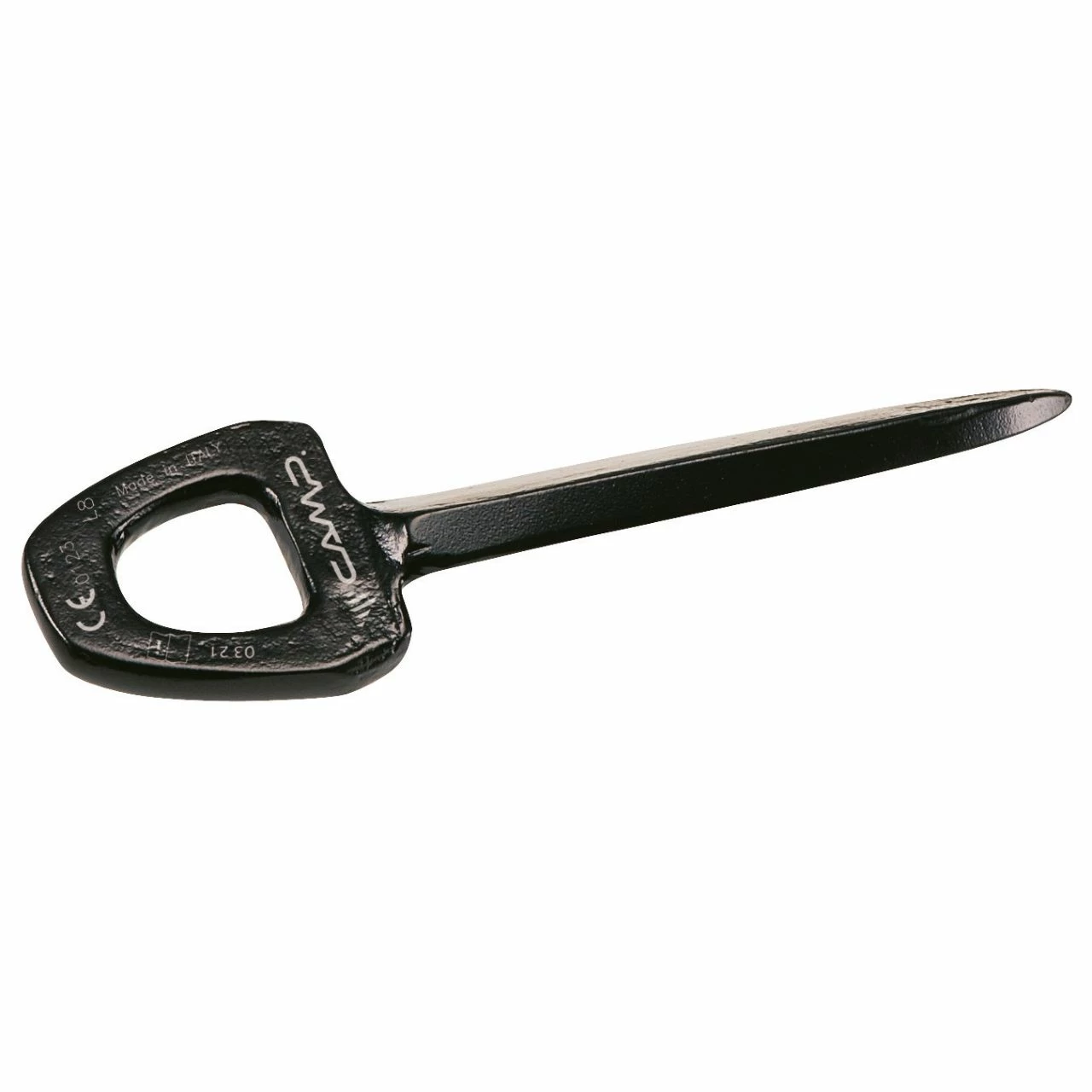 The pointed wedge shape of the CAMP Universal Piton fits the most common cracks. A 45ยฐ angled head applies torque to maximize holding power for both vertical and horizontal placements.