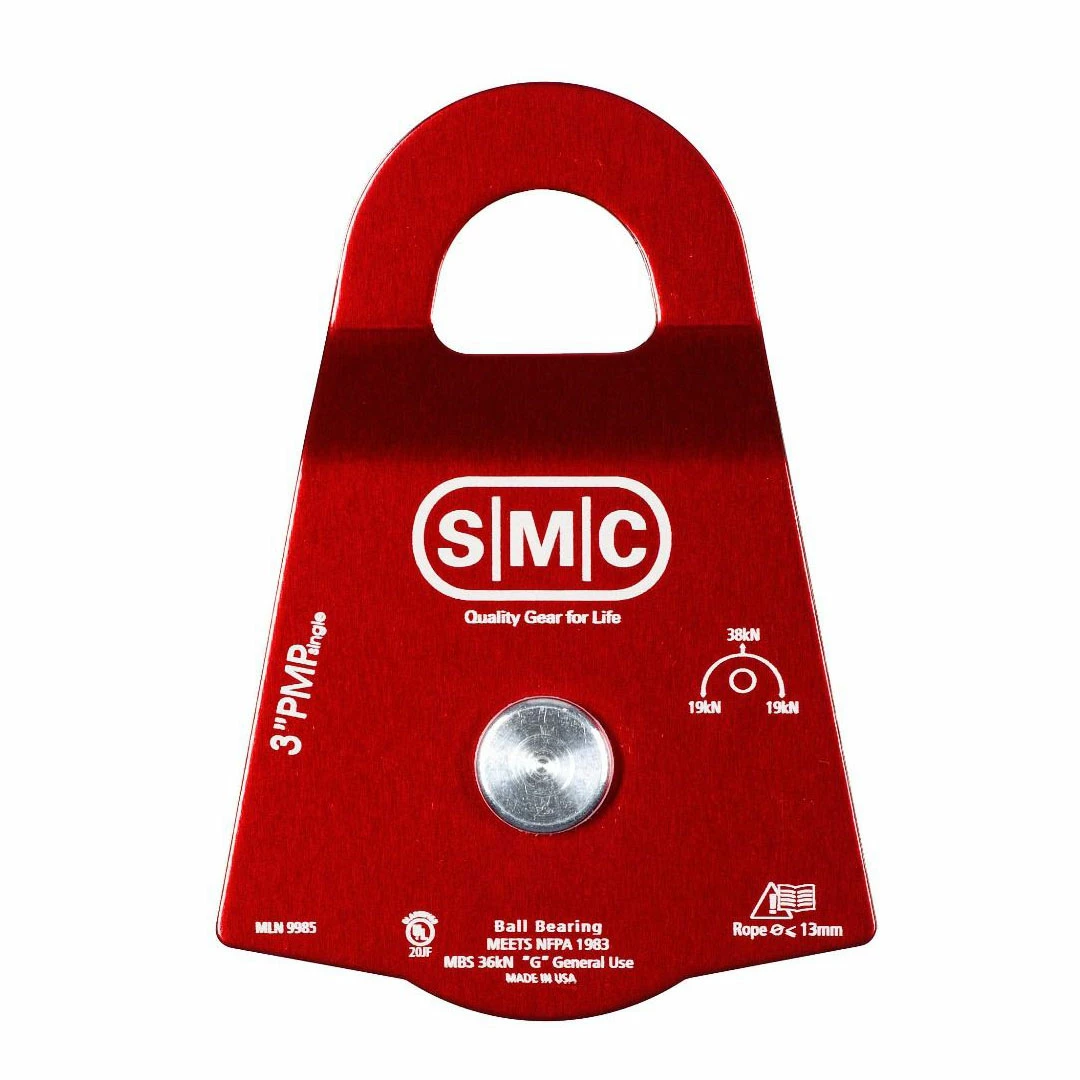 The 3″ PMP is the largest of three sizes of SMC Prusik Minding Pulleys and therefore handle the largest loads and toughest tasks. PMPs feature a wide base design that maximizes the effectiveness of a Prusik hitch and are most often used as an integral piece of equipment in progress capture and hauling systems. PMPs are especially versatile and may be used in many ways, from progress capture and hauling systems to crevasse rescue, high-lines and Tyrolean traverses.