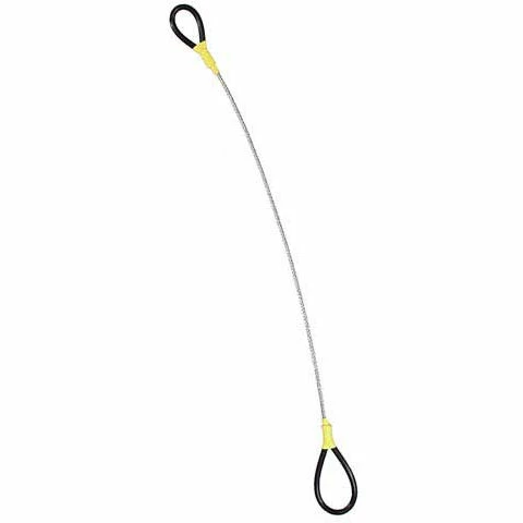 Yates’ Pin-Head Cabled Gear Puller is made for yanking out pitons using a wall hammer. Eye ends are covered with thick, plastic tubing to reduce wear. Also known by some climbers as a “funkness device.”